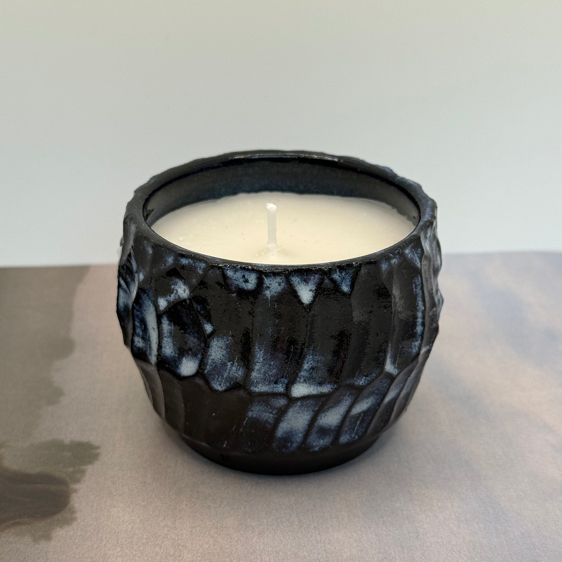 Zwarte kaars met witte wax. Subtiele geur van bamboe en jasmijn.