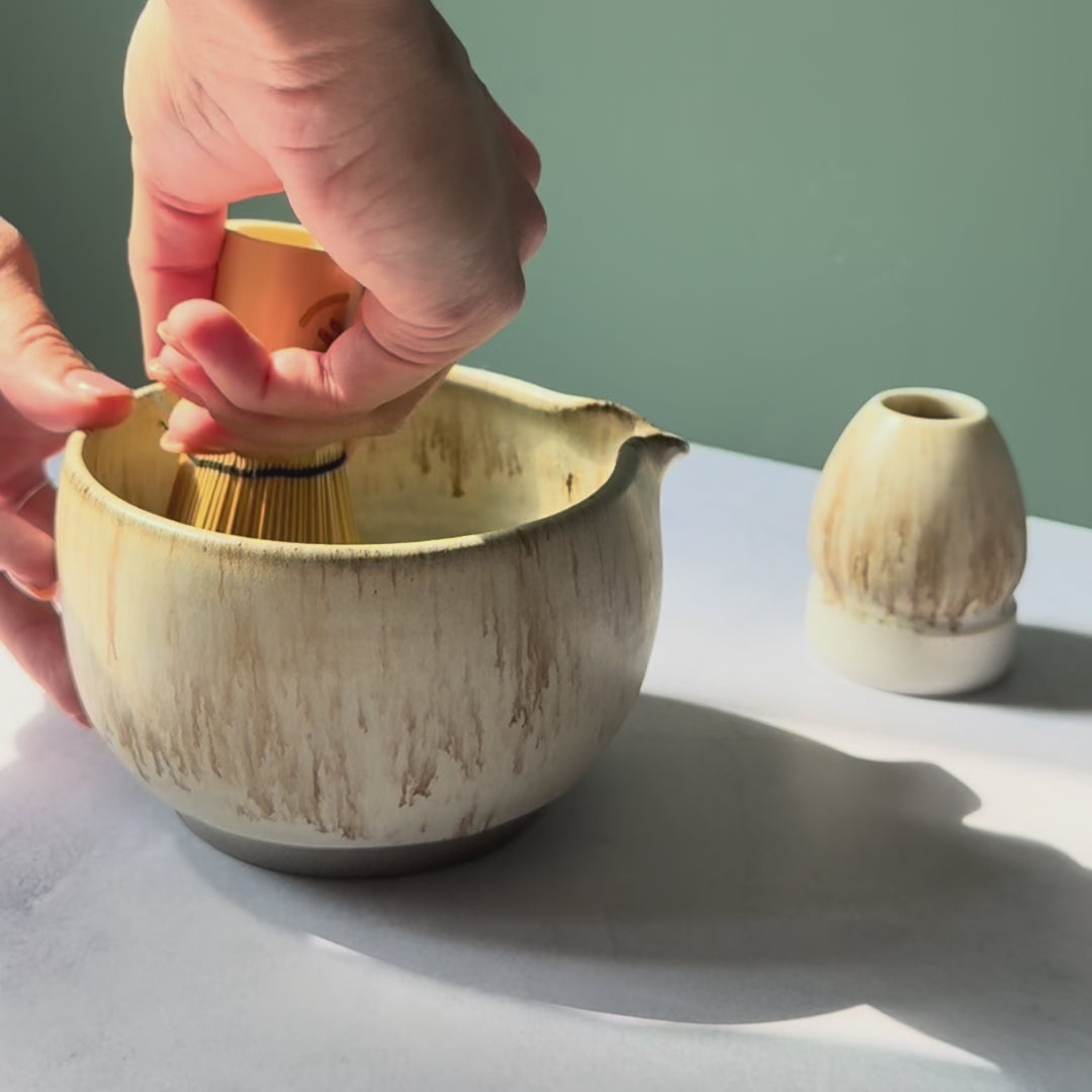 Deze handgemaakte matcha theeset is met zorg gedraaid in de Lum Ceramics studio. Ontworpen met oog voor jouw beleving en gebruiksplezier. De kom en standaard helpen je om elke dag een klein moment van rust te creëren. Matcha bereiden wordt zo meer dan thee zetten. Het wordt een ritueel, een momentje helemaal voor jezelf.