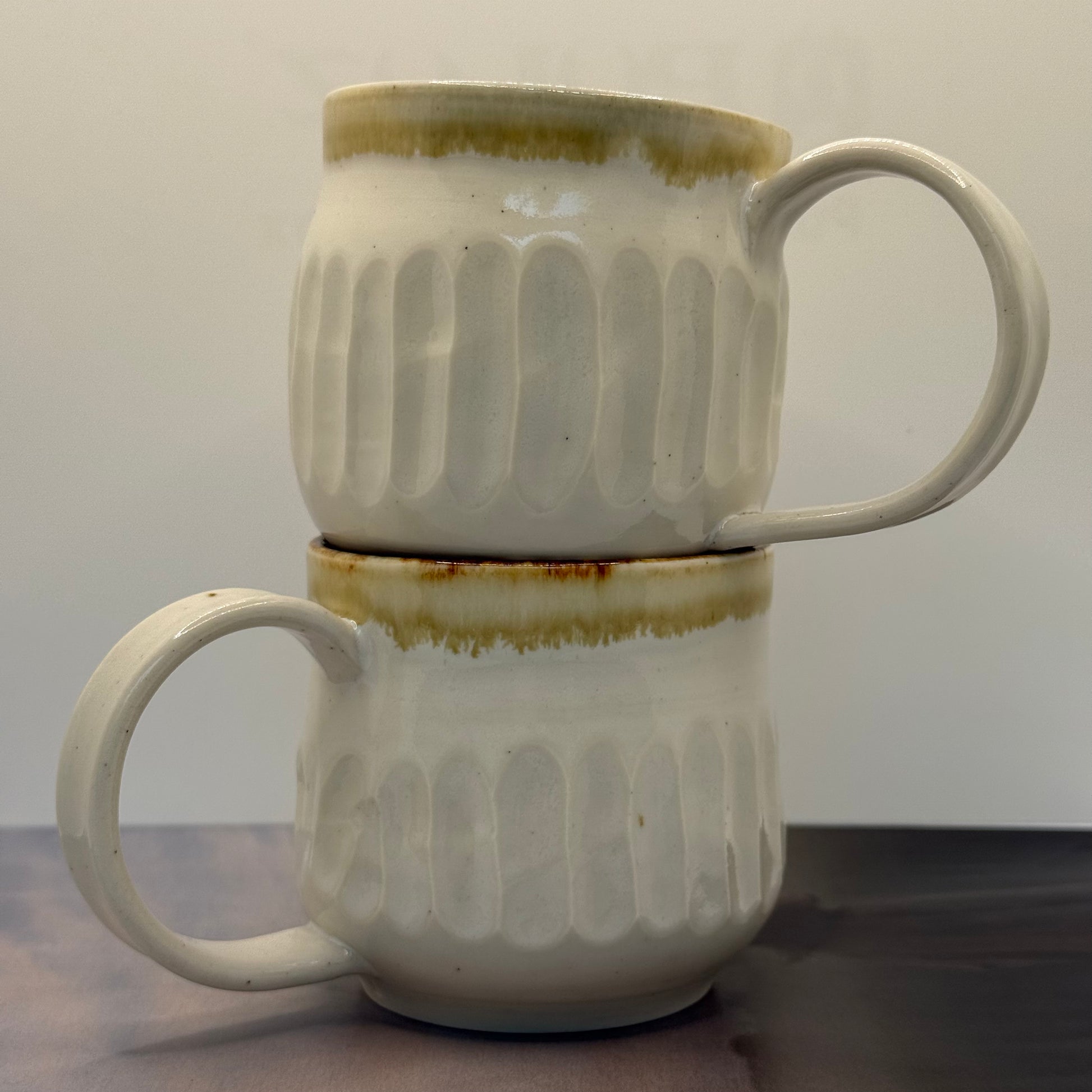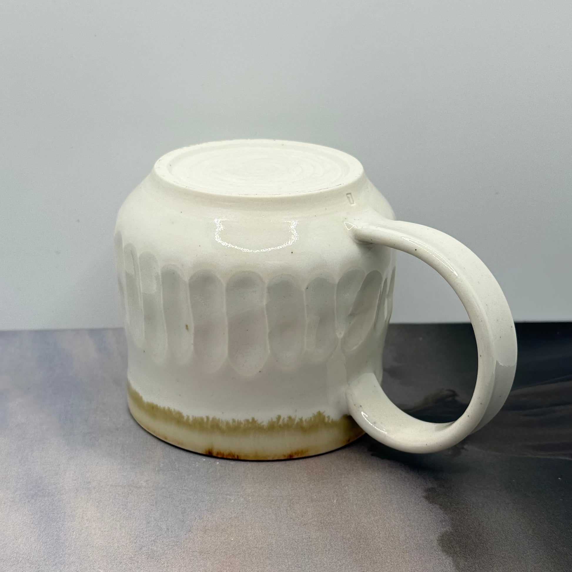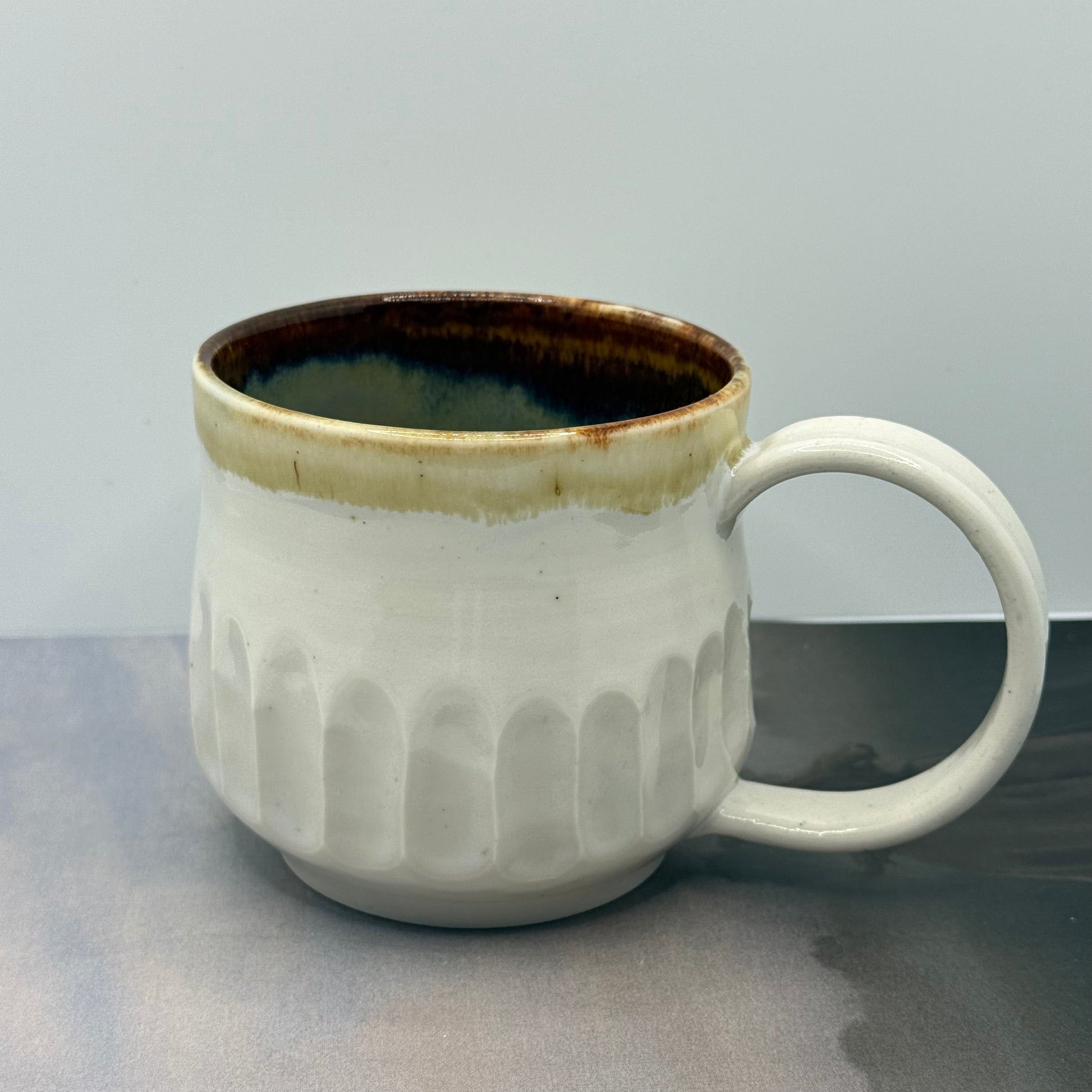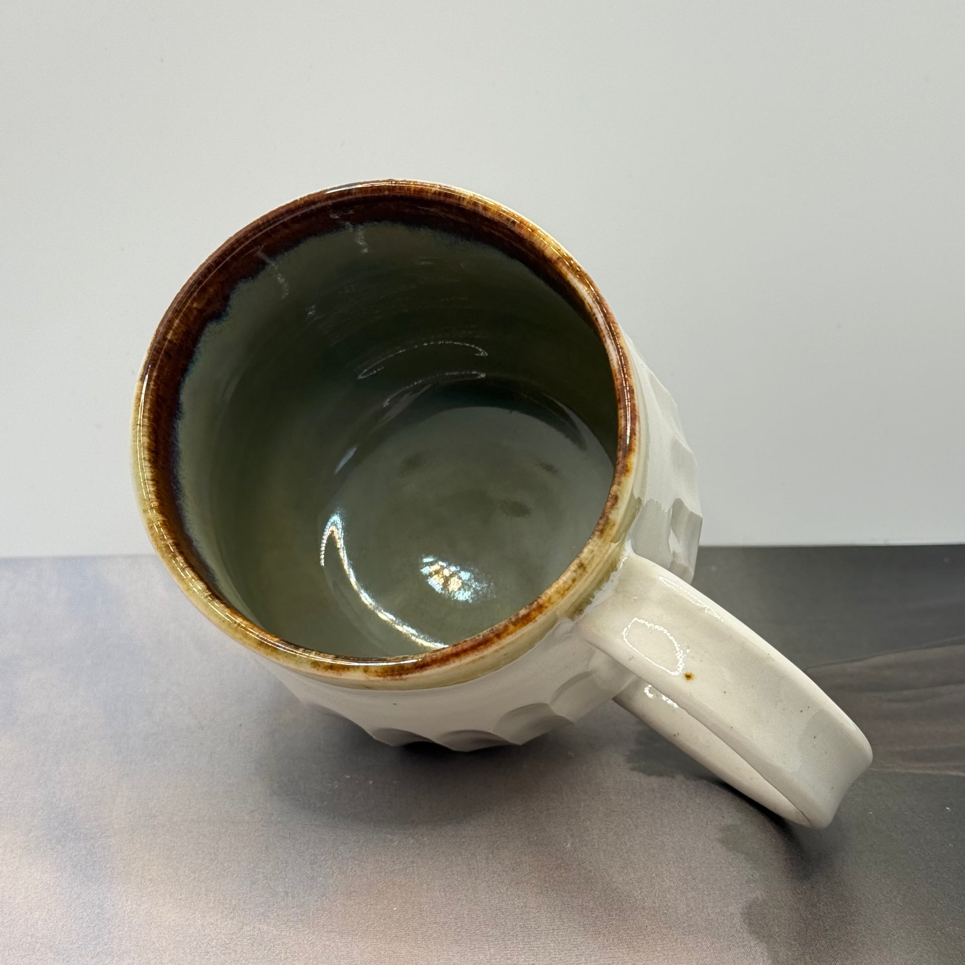 Porseleinen mok met bruingroene druipglazuur. Om de set van foto vijf te bestellen, bestel je ook deze mok: https://lumceramics.nl/products/mok-lichtblauw-i-kopie